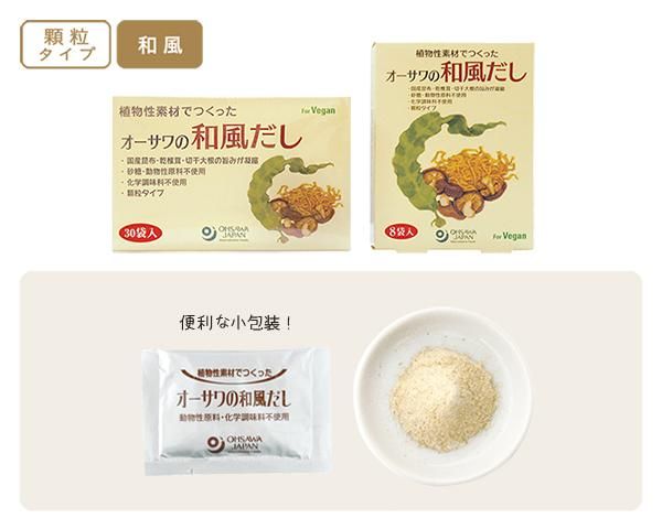 植物性素材100%でつくったオーサワの和風だしの素が新発売!昆布・乾椎茸・切干大根の旨みが凝縮され、料理の味をワンランクアップしてくれます。汁物、煮物、麺類のつゆなど、様々な料理にご使用ください♪