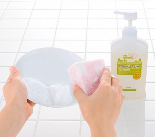 ●水で湿らしたスポンジ等に1プッシュつけて良く泡立ててから洗ってください。泡が消えてきたら、スポンジ等をすすぎ、もう一度つけてください。