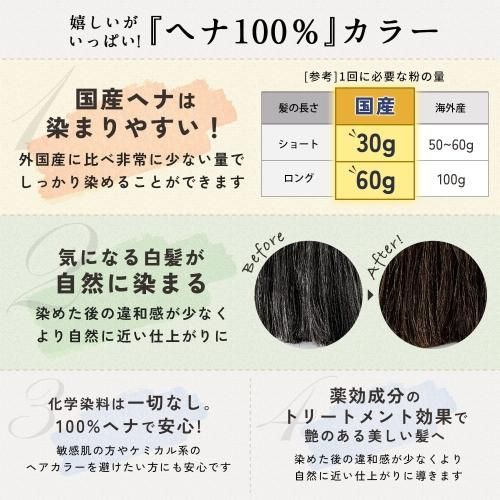 インド産ナンバアイ葉に、与論島産ヘナとインド産アンマロク果実を配合。白髪が多い方、髪を黒くしたい方におすすめ。白髪の部分がダークブラウンに染まります。