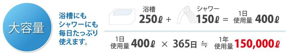 ¥«¡¼¥È¥ê¥Ã¥¸¸ò´¹¤ÎÌܰ¤ϡ¢1Æü400¥ê¥Ã¥È¥ë»ÈÍѤ·¤Æ1ǯ¤Ë1²ó¤Ç¤¹¡£¥·¥ã¥ï¡¼¤À¤±¤Ç¤Ê¤¯¡¢ÍáÁ夨¤ÎµëÅò¤Ë¤â¤¿¤Ã¤×¤ê¤È»ÈÍѤǤ­¤Þ¤¹¡£