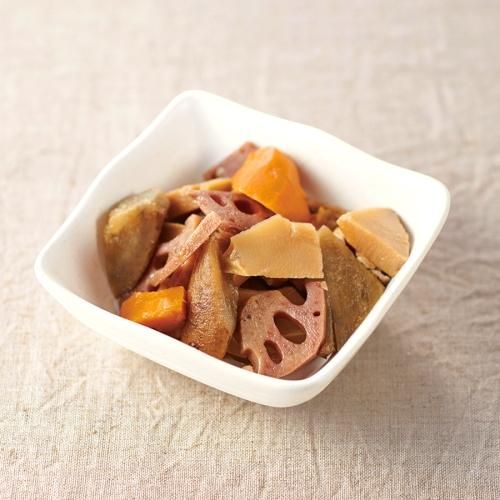 特別栽培にんじん(国産)、ごぼう・れんこん・たけのこ(国産)、油揚げ、醤油、醗酵調味料、メープルシュガー、昆布粉末、玄米醗酵調味料、食塩(海の精)