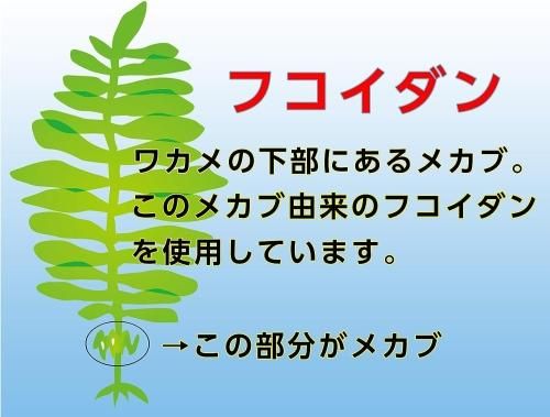ワカメのメカブから抽出したフコイダンを使用し、アガリクスエキスも配合しています。皆様の健康維持にお役立てください。