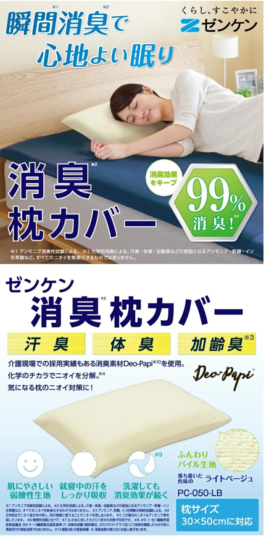 割引商品メーカー直送ゼンケンの消臭枕カバーは、介護現場でも使用される消臭素材を使用しています。化学の力でニオイを分解し、気になる枕のニオイ対策に最適です。