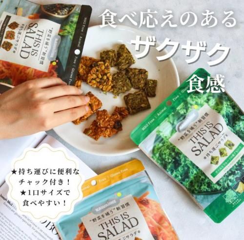 しっかり野菜を使っていますが、グラノーラに近い感覚で味の調整できます。ゴロっとしたグラノーラになっているので、そのままおやつのように食べてもよし。ヨーグルトなどに振りかけてもよし。お好みの素材やフルーツを足しても美味しい。栄養豊富ですので、余すことなく最後までお楽しみください。